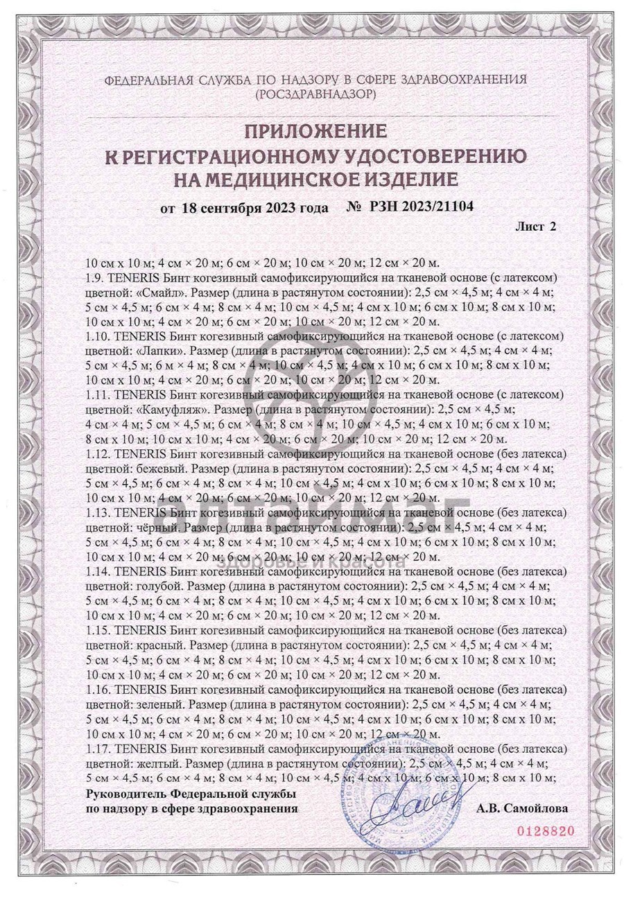 БИНТ КОГЕЗИВНЫЙ САМОФИКСИРУЮЩИЙСЯ TENERIS НА ТКАНЕВОЙ ОСНОВЕ С ЛАТЕКСОМ - предназначен для фиксации перевязочных средств, подкладочного материала и компрессов на различных частях тела, в том числе на суставах и частях тела имеющих коническую или округлую форму.