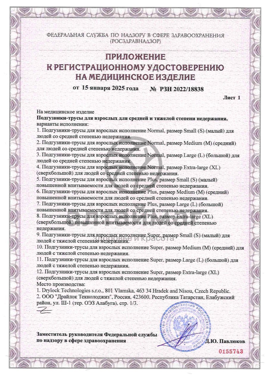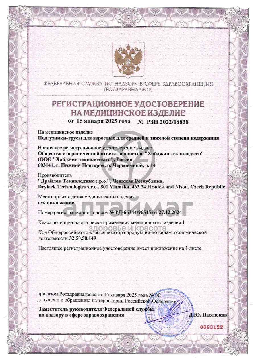 - Внутренний абсорбирующий слой из волокнистой массы препятствует распространению запаха и удерживает жидкость внутри трусов ,
